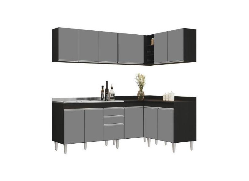 Armário De Cozinha Modulado De Canto 6 Peças Cp30 Com Pia Inox Preto/C