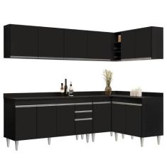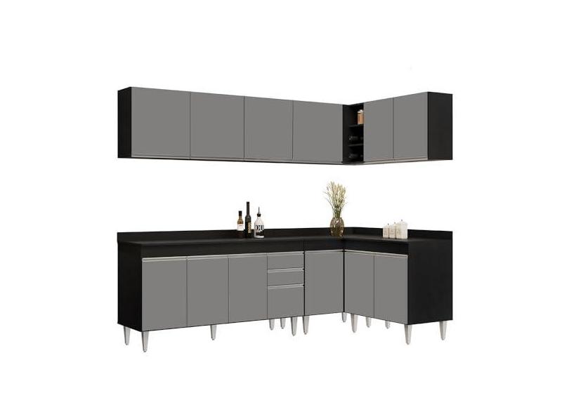 Armário de Cozinha Modulado de Canto 6 Peças CP32 Balcão com Tampo Preto/Cinza - Lumil