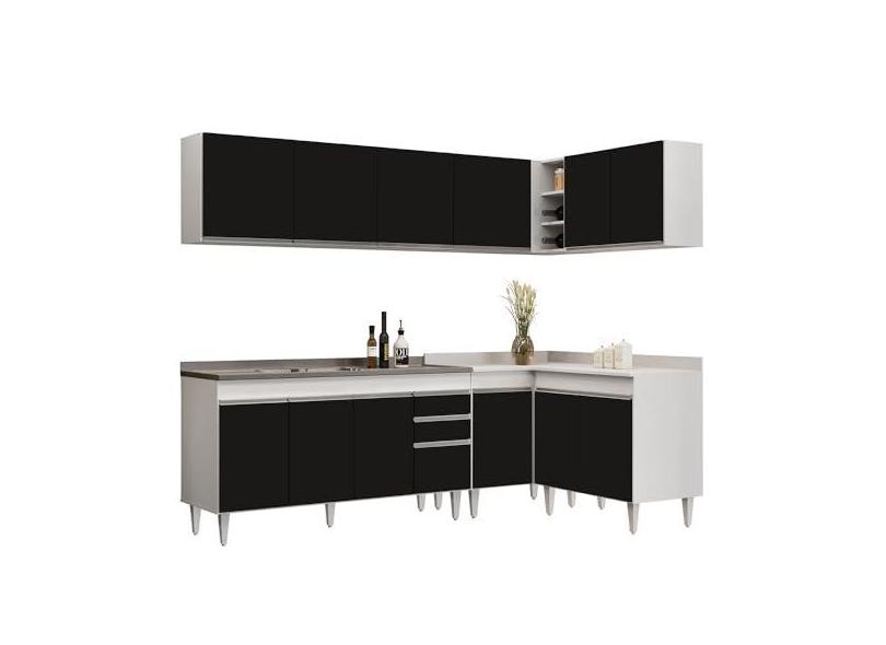 Armário de Cozinha Modulado de Canto 6 Peças CP33 com Pia Inox Branco/Preto - Lumil