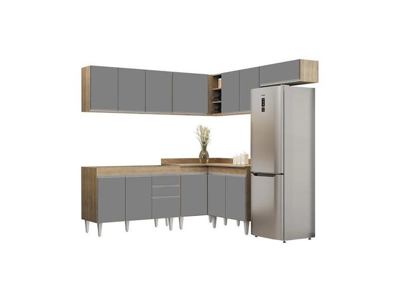 O menor preço encontrado no Brasil para Armário de Cozinha Modulado de Canto 7 Peças CP19 Balcão sem Tampo Castanho/Cinza - Lumil atualmente é R$ 2.308,15.
