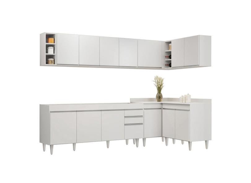 Armário De Cozinha Modulado De Canto 7 Peças Cp34 Balcão Sem Tampo Branco