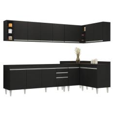 Armário de Cozinha Modulado de Canto 7 Peças CP34 Balcão sem Tampo Preto - Lumil