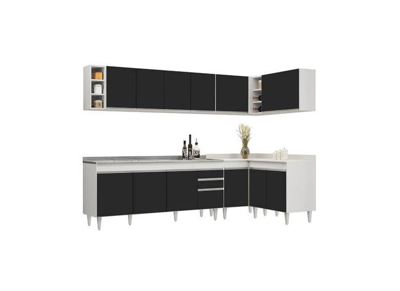 O menor preço encontrado no Brasil para Armário de Cozinha Modulado de Canto 7 Peças CP36 com Pia Inox Branco/Preto - Lumil atualmente é R$ 3.431,61.