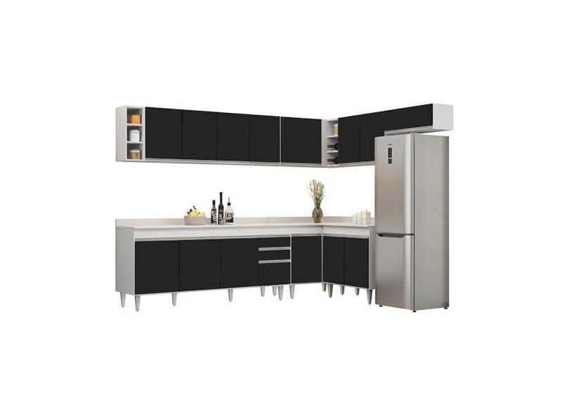 Armário de Cozinha Modulado de Canto 8 Peças CP26 Balcão com Tampo Branco/Preto - Lumil
