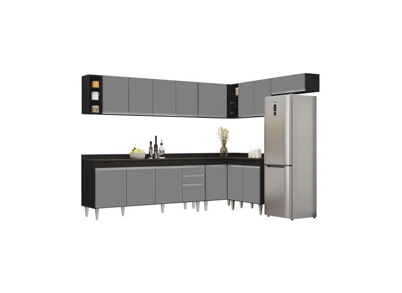 Armário de Cozinha Modulado de Canto 8 Peças CP26 Balcão com Tampo Preto/Cinza - Lumil