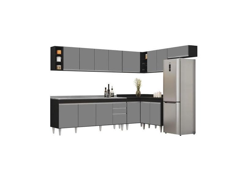 O menor preço encontrado no Brasil para Armário de Cozinha Modulado de Canto 8 Peças CP27 com Pia Inox Preto/C atualmente é R$ 3.061,94.