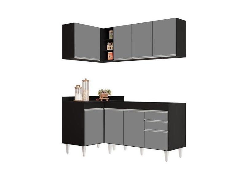 Armário de Cozinha Modulado de Canto Direito 4 Peças CP37 Balcão sem Tampo Preto/Cinza - Lumil
