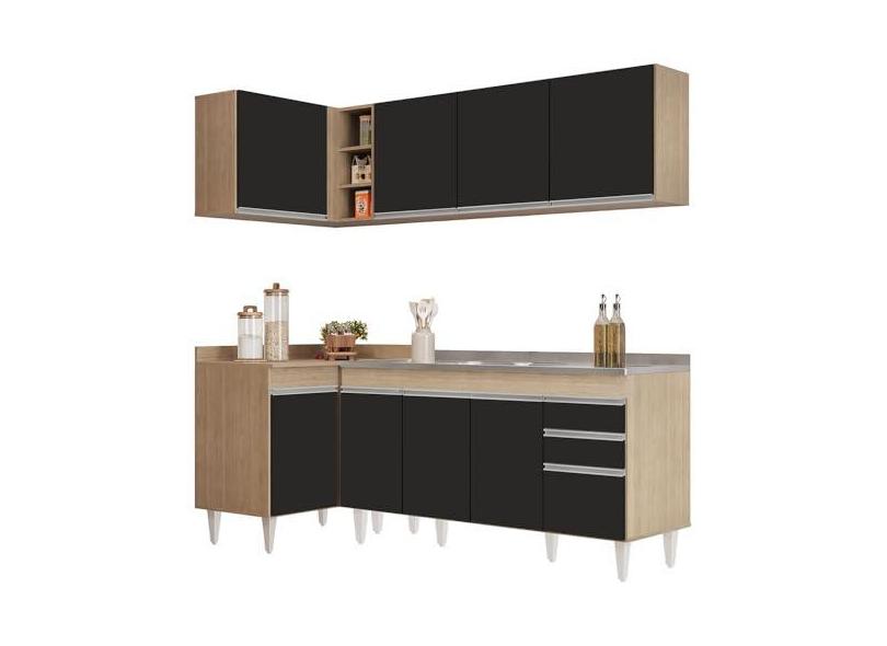 O menor preço encontrado no Brasil para Armário de Cozinha Modulado de Canto Direito 4 Peças CP42 com Pia Inox Castanho/Preto - Lumil atualmente é R$ 2.273,31.