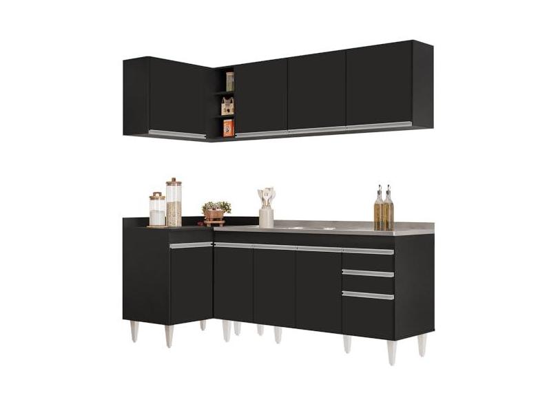 O menor preço encontrado no Brasil para Armário de Cozinha Modulado de Canto Direito 4 Peças CP42 com Pia Inox Preto - Lumil atualmente é R$ 2.281,75.