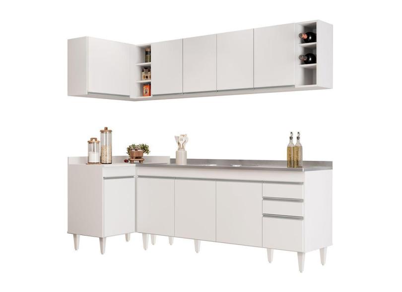 Armário De Cozinha Modulado De Canto Direito 5 Peças Cp45 Com Pia Inox Branco
