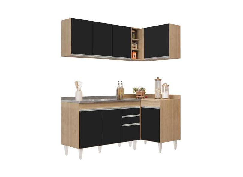 Armário de Cozinha Modulado de Canto Esquerdo 4 Peças CP48 com Pia Inox Castanho/Preto - Lumil