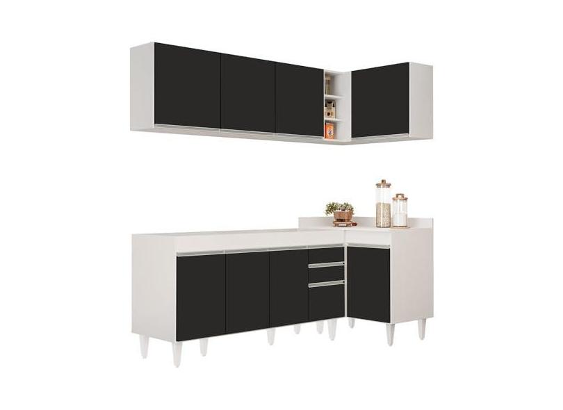 O menor preço encontrado no Brasil para Armário de Cozinha Modulado de Canto Esquerdo 4 Peças CP49 Balcão sem Tampo Branco/Preto - Lumil atualmente é R$ 1.337,34.