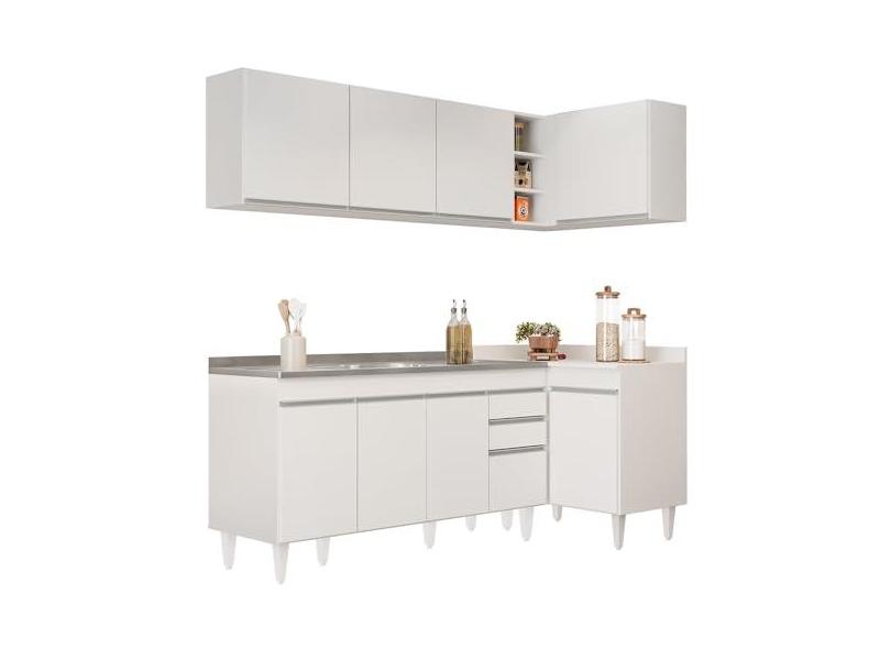 O menor preço encontrado no Brasil para Armário de Cozinha Modulado de Canto Esquerdo 4 Peças CP51 com Pia Inox Branco - Lumil atualmente é R$ 2.182,41.