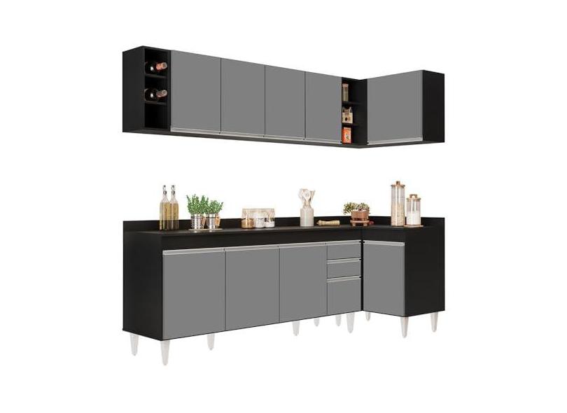 O menor preço encontrado no Brasil para Armário de Cozinha Modulado de Canto Esquerdo 5 Peças CP53 Balcão com Tampo Preto/Cinza - Lumil atualmente é R$ 1.621,98.
