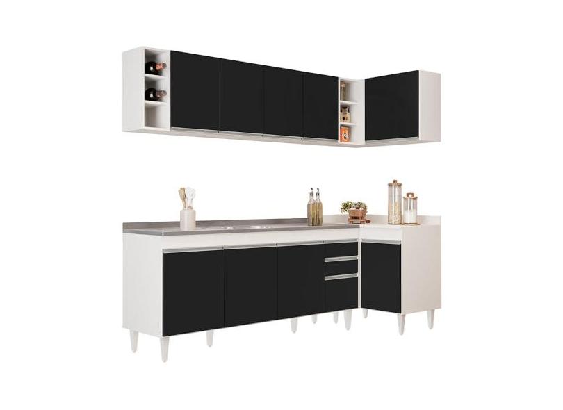 O menor preço encontrado no Brasil para Armário de Cozinha Modulado de Canto Esquerdo 5 Peças CP54 com Pia Inox Branco/Preto - Lumil atualmente é R$ 2.823,63.