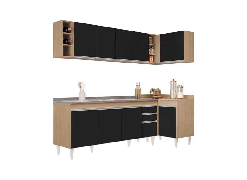 O menor preço encontrado no Brasil para Armário de Cozinha Modulado de Canto Esquerdo 5 Peças CP54 com Pia Inox Castanho/Preto - Lumil atualmente é R$ 2.882,79.
