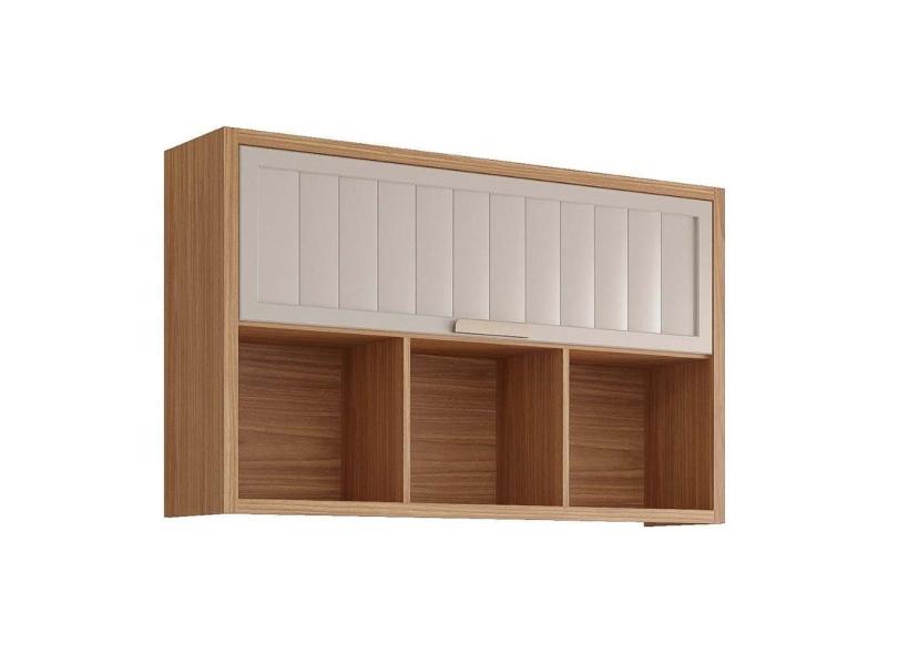 Armário de Cozinha Modulado Estela c/3Nichos e 1 Porta Basculante Ripada 120 cm Freijo/Off White - MGM