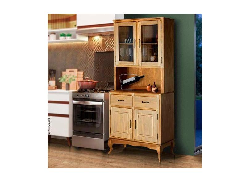 Armário De Cozinha Pequeno Rústico Madeira Maciça 4 Portas Mel Shop Jm