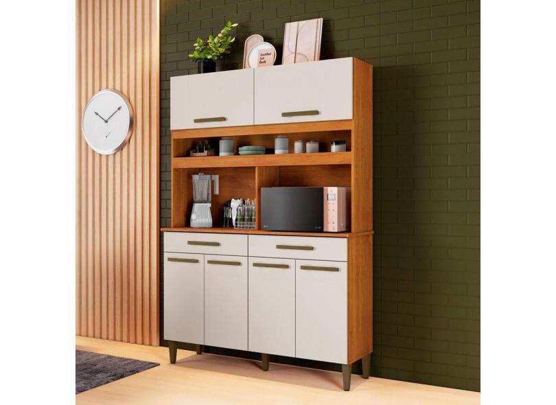 Armário de Cozinha São Paulo 6 Portas 2 Gavetas Nature/Off White - Kaiki Móveis