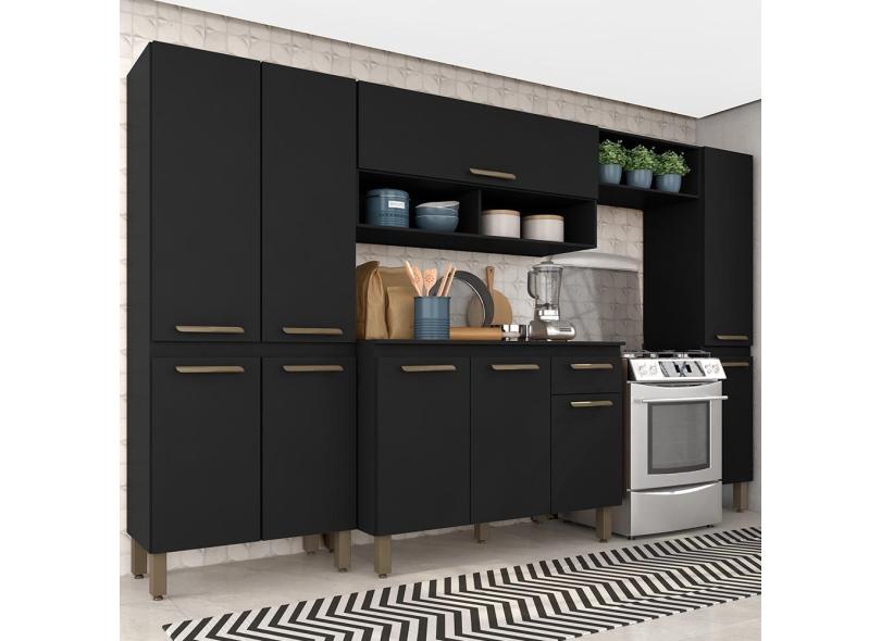 Armário De Cozinha Tieli 5 Peças Preto Fosco - Móveis Arapongas