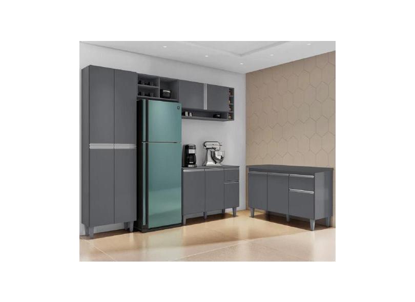 Armário De Cozinha Vanessa Com Balcão 120mt Tatiane Com Tampo Mdp Cinz
