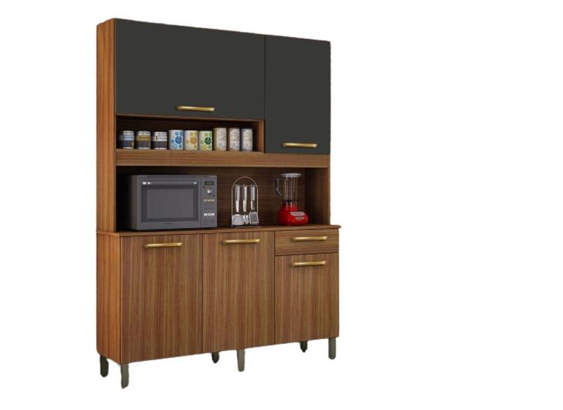 Armário E Balcão De Cozinha Esmeralda Carvalho E Grafite