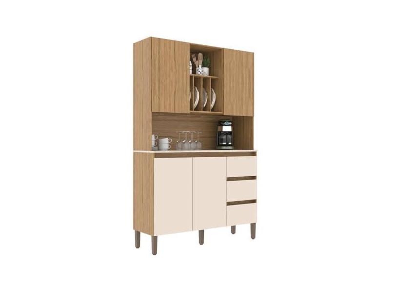 Armário Kit Cozinha com 4 Portas, 3 Gavetas Ac4430 Naturalle/cristalo/petra