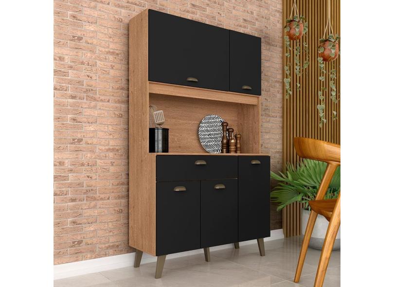 Armário Kit De Cozinha Emily 90cm Carvalho/preto - Móveis Arapongas