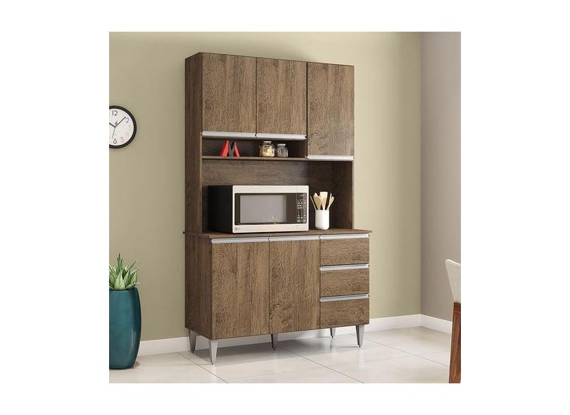 Armario Kit Para Cozinha Cristal 5 Portas 3 Gavetas Castanho - Bymader