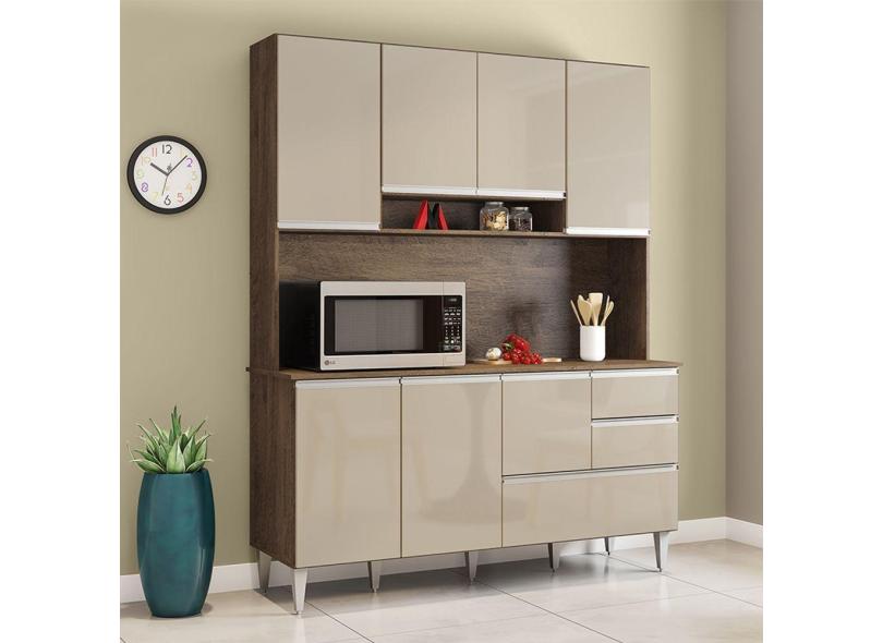 Armario Kit Para Cozinha Esmeralda 7 Portas 3 Gavetas Castanho Off White