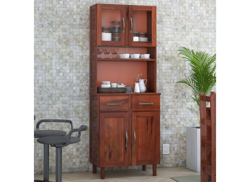 Armário Para Cozinha 4 Portas 2 Gavetas Madeira Maciça Mogano 48 - Lanes
