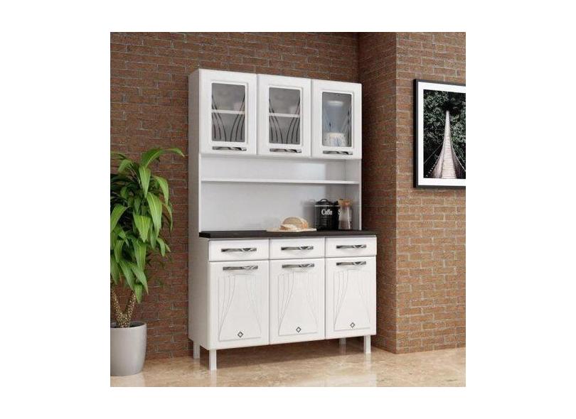 Armário Para Cozinha 6 Portas 3 Gavetas Com Tampo E Vidro Star New Tel