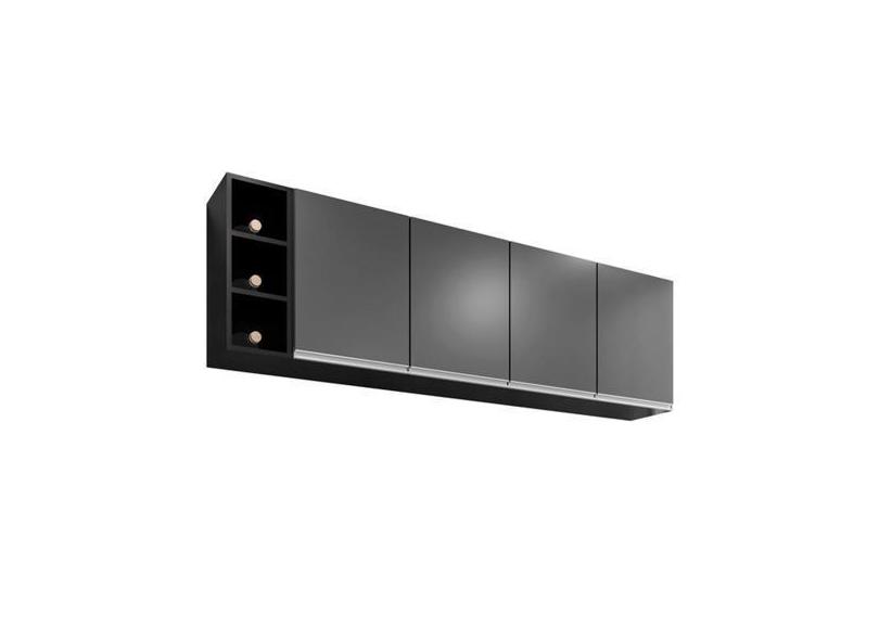 Armário Para Cozinha com Nicho Garrafeiro 160cm - Vallisa Decor, Preto