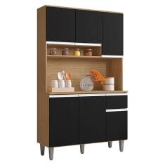 Armário Para Cozinha Kit Márcia Amendoa Preto - Ajl - Ajl Móveis