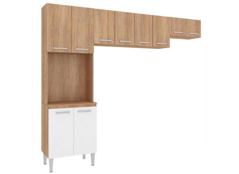 Armário para Cozinha Larissa 240 Cm Paneleiro Nicho Microondas mdp Carvalho Branco - ClickLar