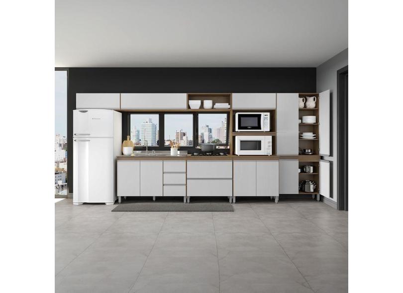 Armário para Cozinha Modulado Completo 440 x 202 Cm 7 Peças MDP Branco MENU