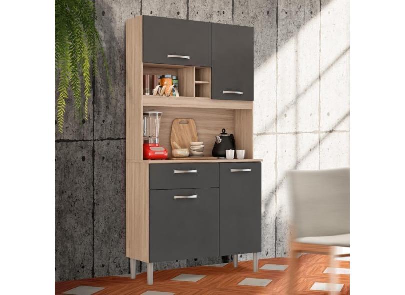 Armário Para Cozinha Pequena 4 Portas 1 Gaveta 91 Cm Avena Grafite Shaera Jm Móveis
