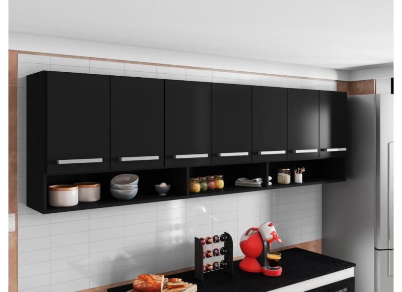 Armario Suspenso Para Cozinha 7 Portas Preto Luxemburgo Brienza Movelaria