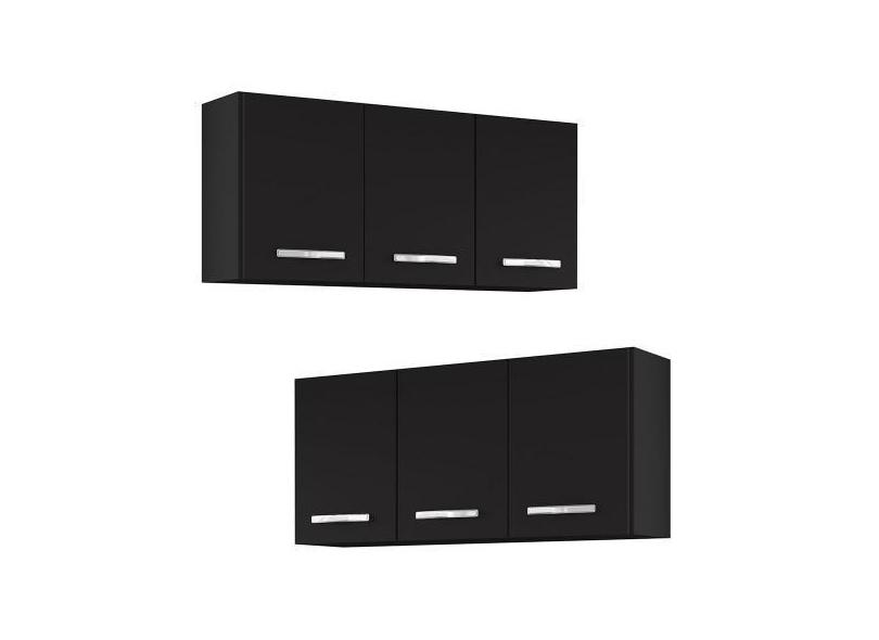 Armários De Cozinha Aéreo 3 Portas 120cm Kit 2 Honduras Preto - Lumil
