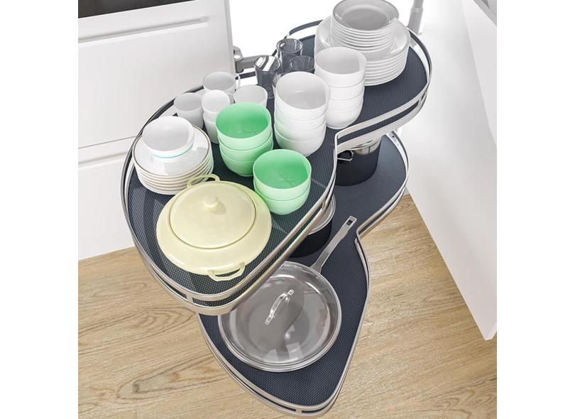 Armários de cozinha com cesta de canto, armário de canto com bandeja giratória de 2 camadas, organizador multiuso, prateleira cega de canto giratória, esquerda