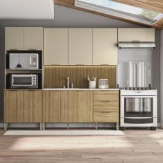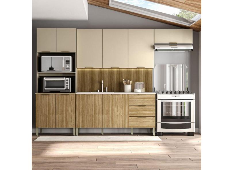O menor preço encontrado no Brasil para Armários para Cozinha com Balcão sem Tampo - Glam Freijó/Vanilla/CP-Ripado Freijó atualmente é R$ 944,43.