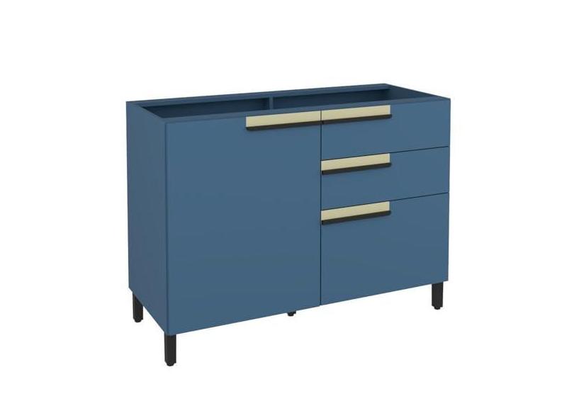 O menor preço encontrado no Brasil para Balcão 120cm 1 Porta 2 Gavetas 1 Porta Temperos Cozinha Flórida Azul Órion atualmente é R$ 602,13.