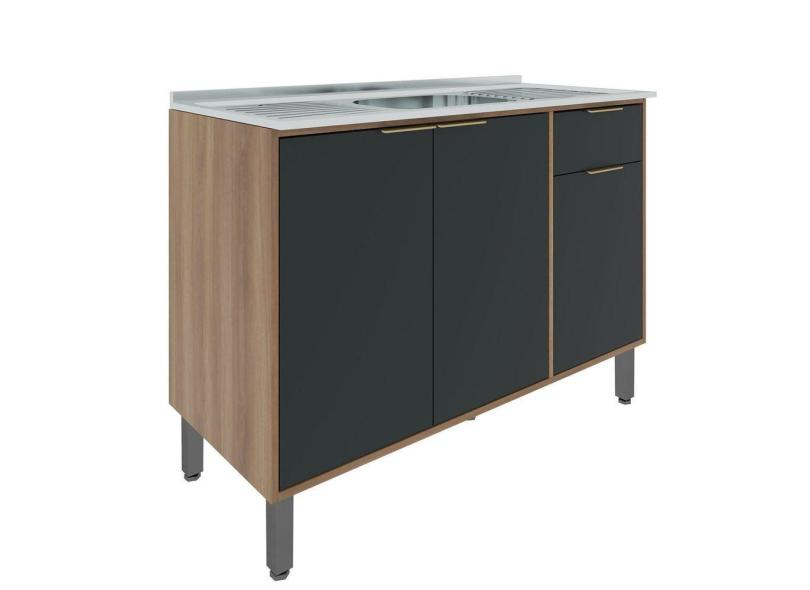 Balcão 120cm 3 Portas Thalita Moveis Sul Nogal Manchester/Preto