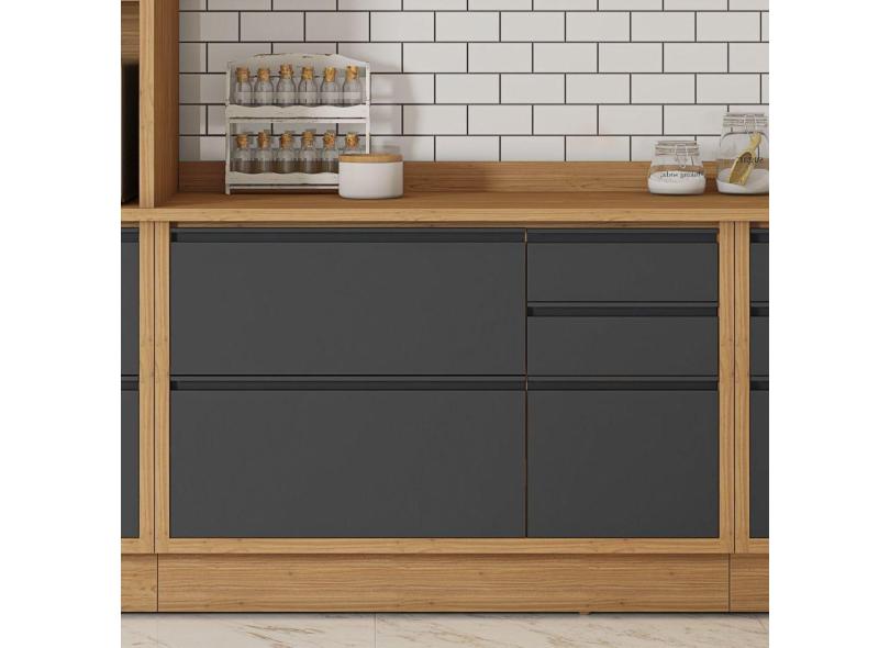 Balcão 120cm MDF 1 Porta 4 Gavetas Tampo UV com Rodapé em PVC Lisboa Itatiaia Freijo/Grafite Intenso