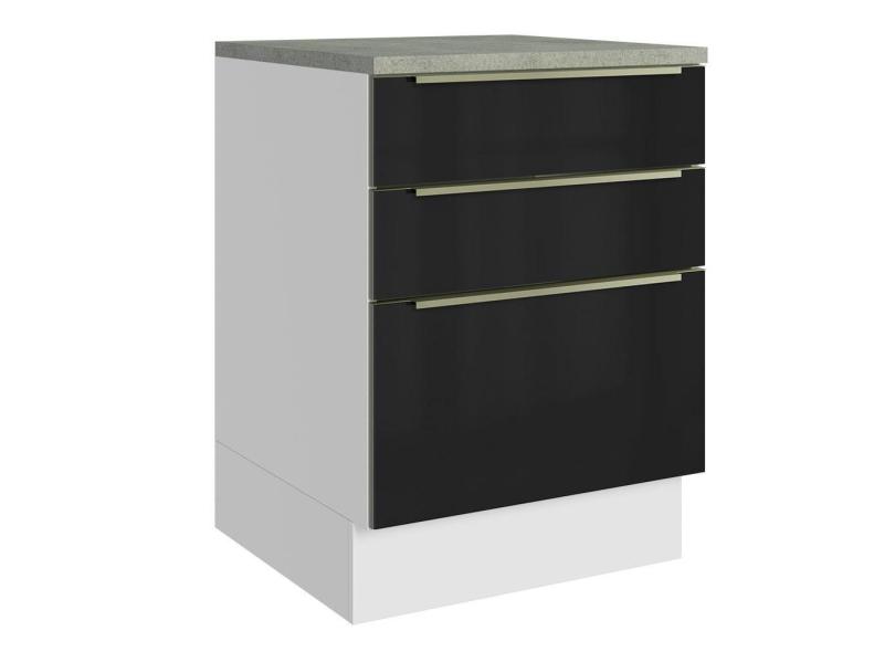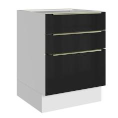 Balcão 60 Cm 3 Gavetas Branco/Preto Lux Madesa