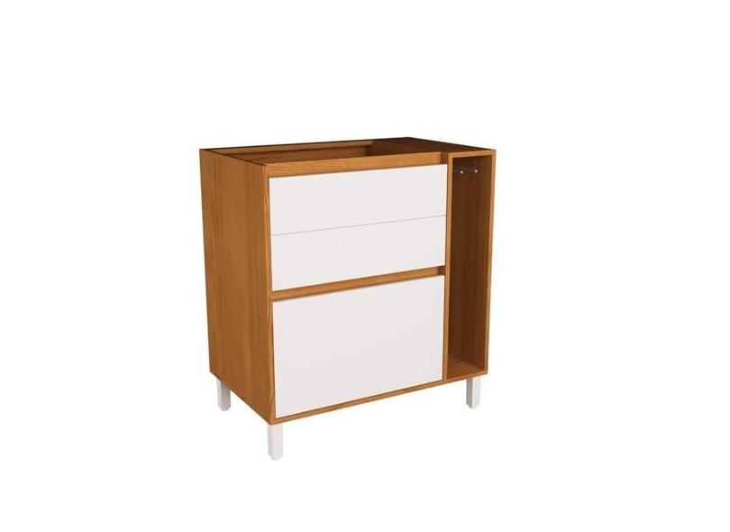Balcão 80cm 3 Gavetas com Toalheiro Cozinha Milão Branco Ártico/Freijó Rocks