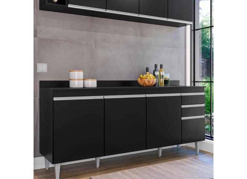 Balcão Ágatha Para Cozinha Preto c/ Tampo - Vallisa Decor