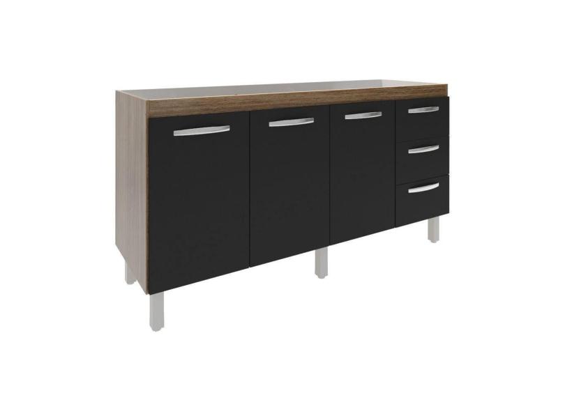 O menor preço encontrado no Brasil para Balcão Armário Cozinha Gabinete Para Pia 148 Cm 3 Gavetas E 3 Portas Deise Savana Preto atualmente é R$ 429,35.