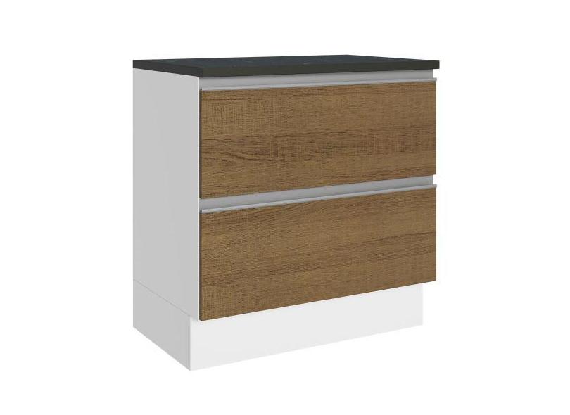 Balcão Armário De Cozinha 100% Mdf 80 Cm 2 Gavetas Branco/Rustic Acord