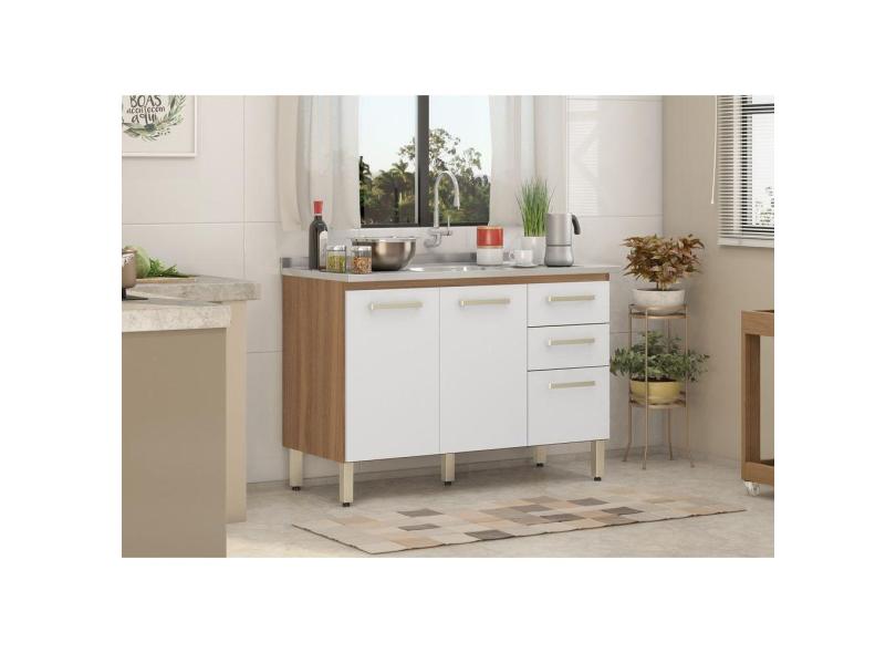 Balcão Armário de Cozinha Miss 120cm Amendola/Branco S/ Tampo - Demobile
